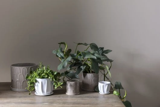 The beautiful sculptural relief arched pattern and grey finish of the Duncan Pot offer understated style with a unique reactive glaze finish.