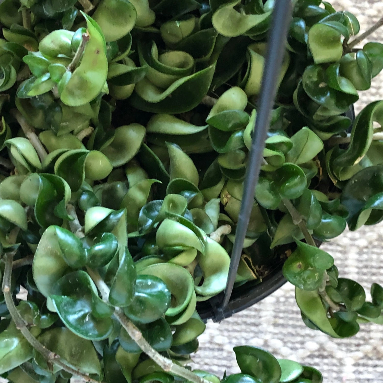 Attractive succulent vining Hoya. It’s leaves have look like fortune cookies or crumpled paper.