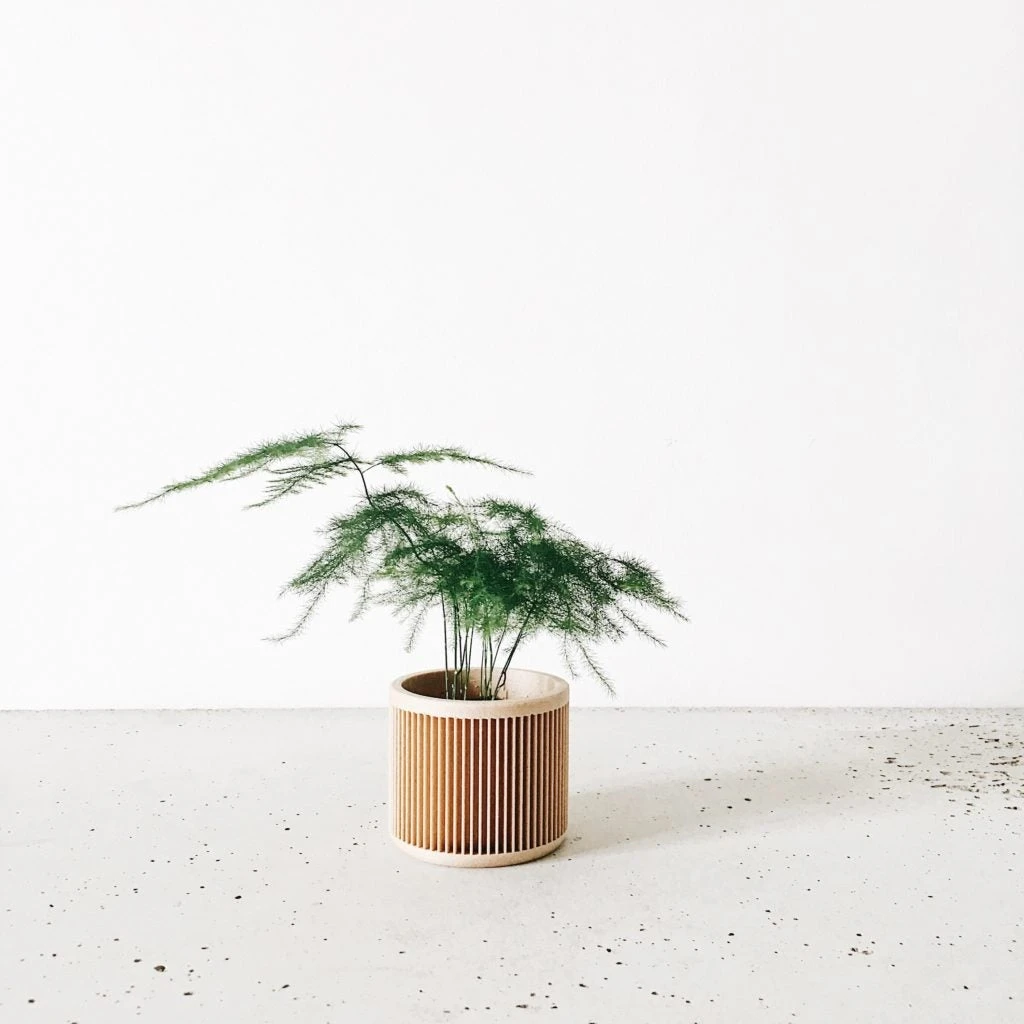 This planter is made from an eco-friendly blend of recycled wood and bioplastic made from corn. Its composition makes these planters fully organic and sustainable.