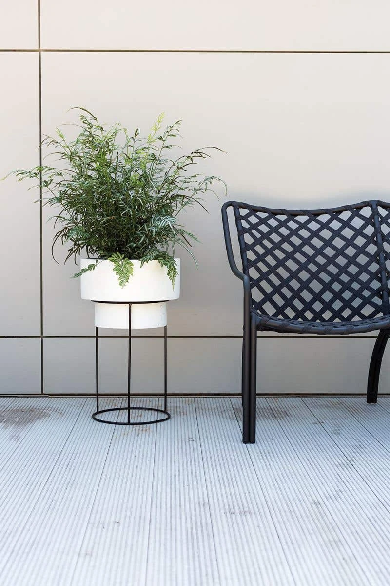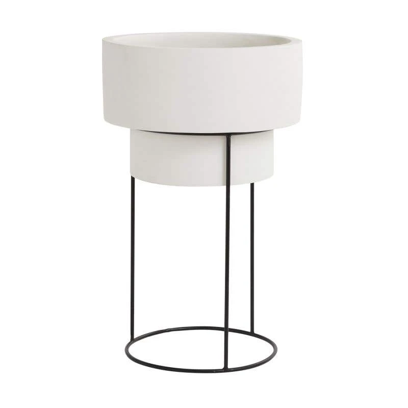 The Moa Plant stand by ACCENT DECOR is a modern planter ideal for patios. Lightweight polyresin pot in an iron stand. It is designed for outdoor use and is frost-resistant.
