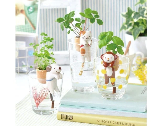 The adorable Shippon by NOTED have fabric tails that soaks water up and feeds its plant! The cat, dog and monkey Shippon each grow a popular plant (clover, wild strawberry and basil). A small plastic cup is included but Shippons sit on any glass or mug of clean water. Sip, sip, sip!