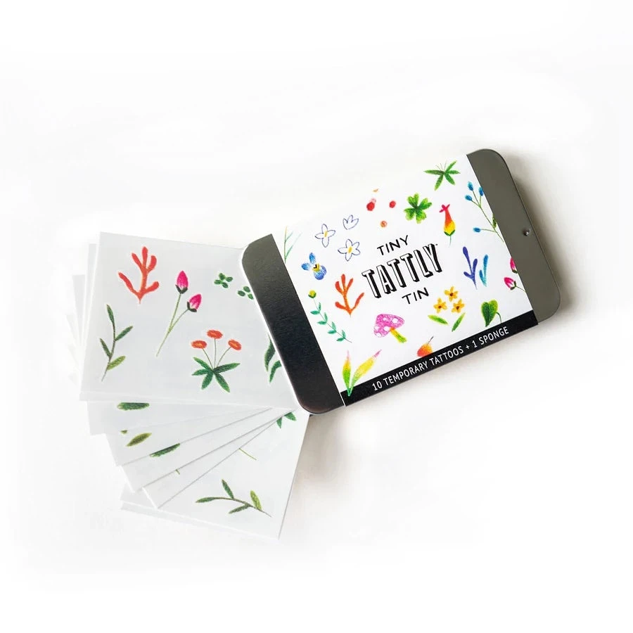 It doesn’t have to be real to rock. The Tiny Imaginary Garden Tin includes ten tiny florals by tattoo artist Jess Chen plus a compact sponge.