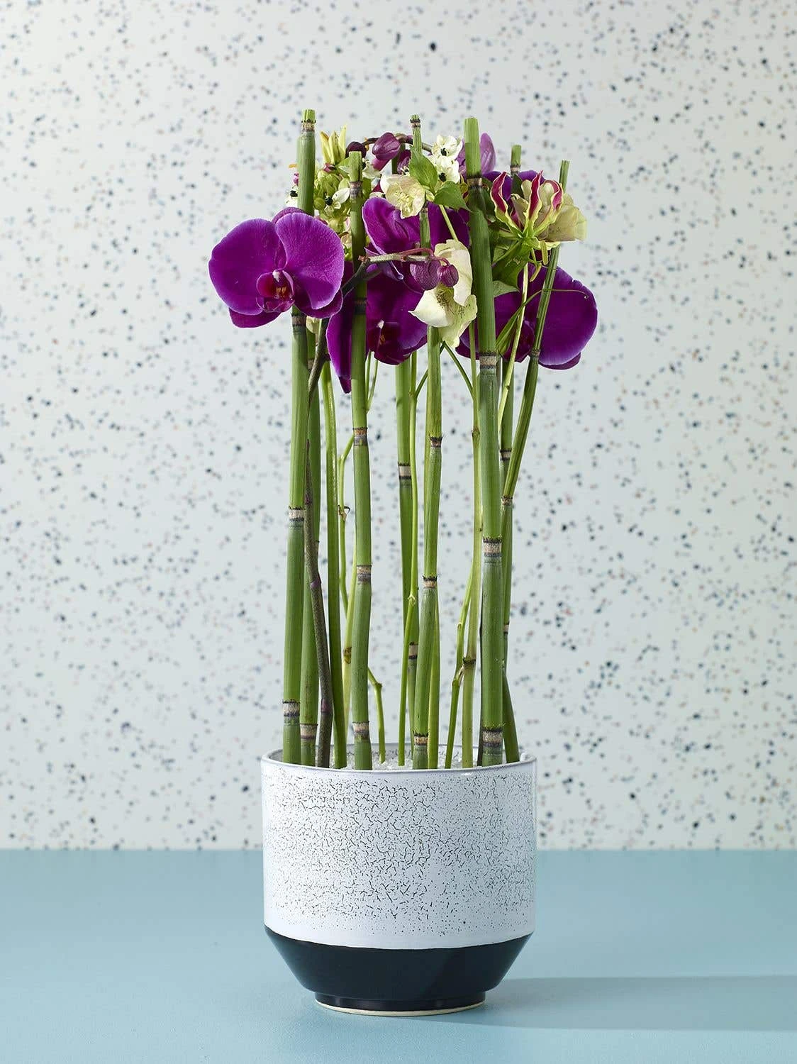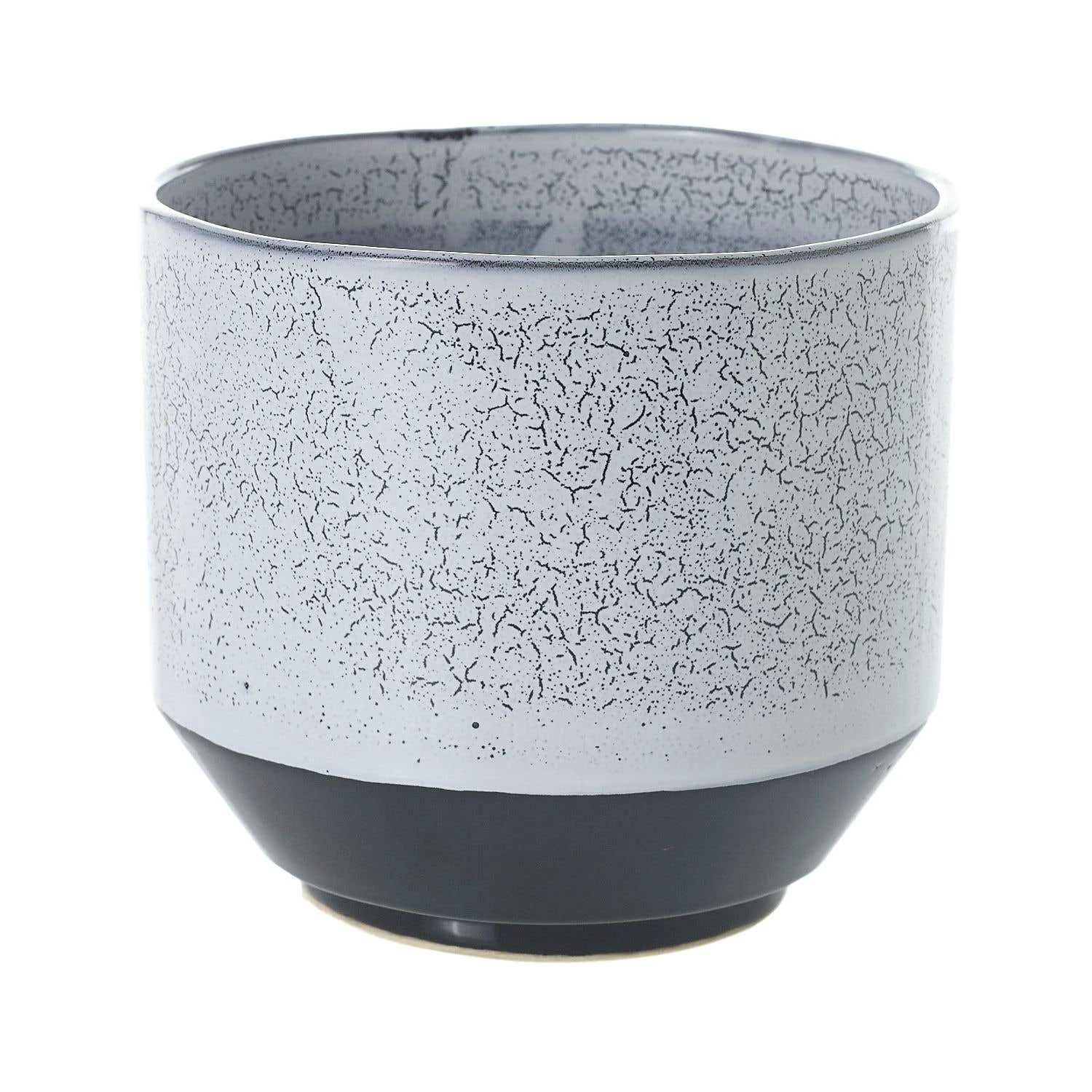 Vanna Pots by Accent Decor combine a grey crackle glaze on the upper part of the pot with a glossy black on the lower portion.